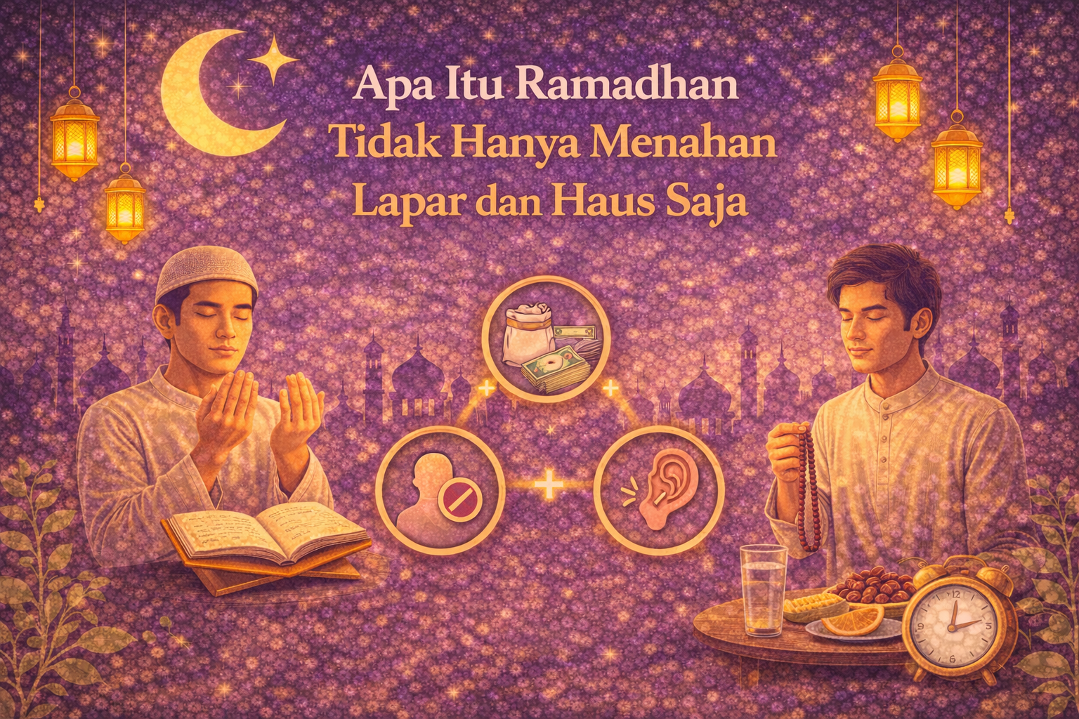 Ramadhan bukan hanya menahan lapar dan haus. Bukan hanya sekadar tidak makan dan tidak minum dalam sehari. Tapi, semua anggota tubuh kita juga ikut berpuasa. Mulut kita tidak digunakan untuk berbicara yang kotor, tubuh kita tidak melakukan kejahatan, serta menjaga adab dengan sesama.
