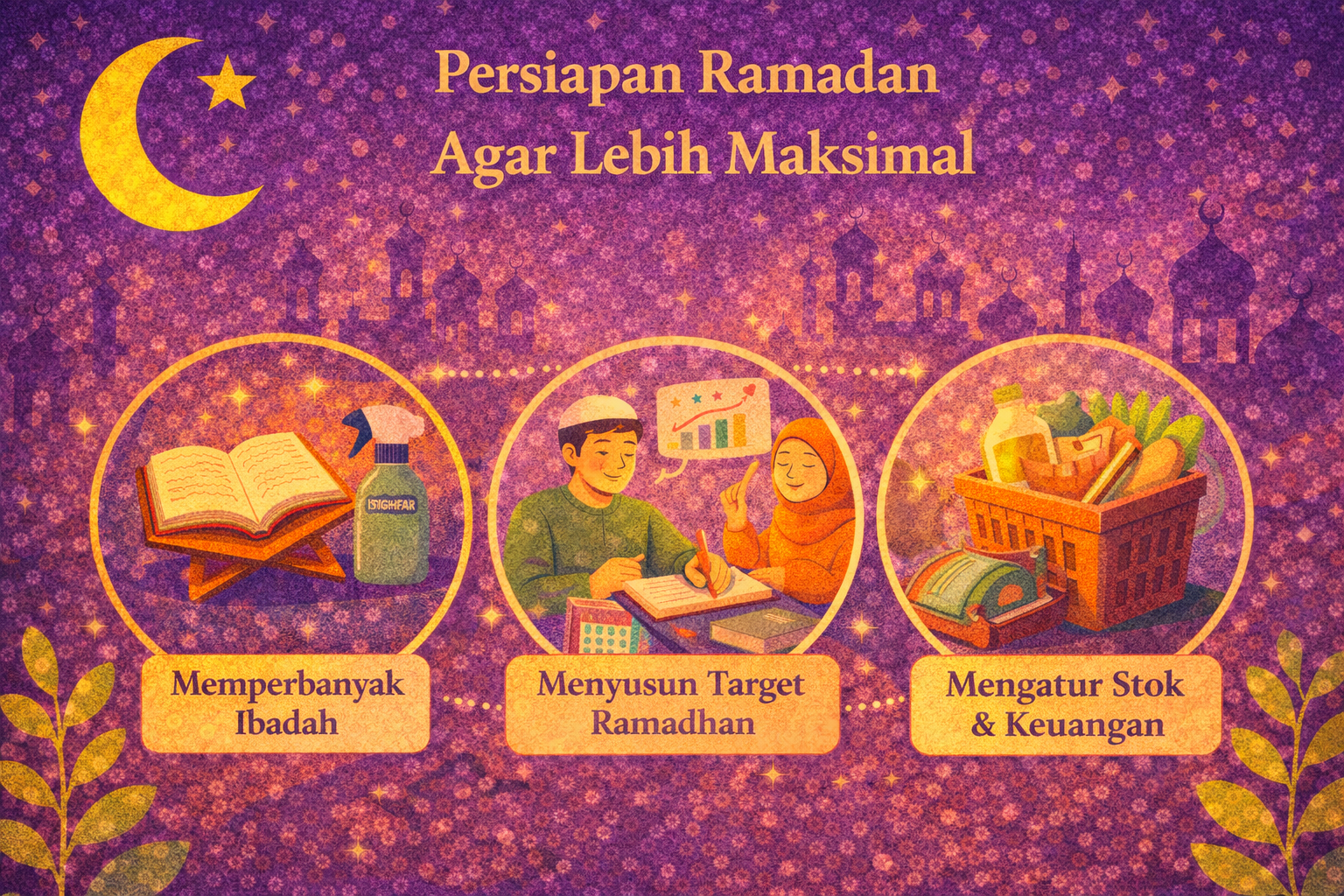 Ramadan sering terasa berat karena gaya hidup kita tidak siap. Maka, persiapan sejak sekarang bisa dilakukan dengan: